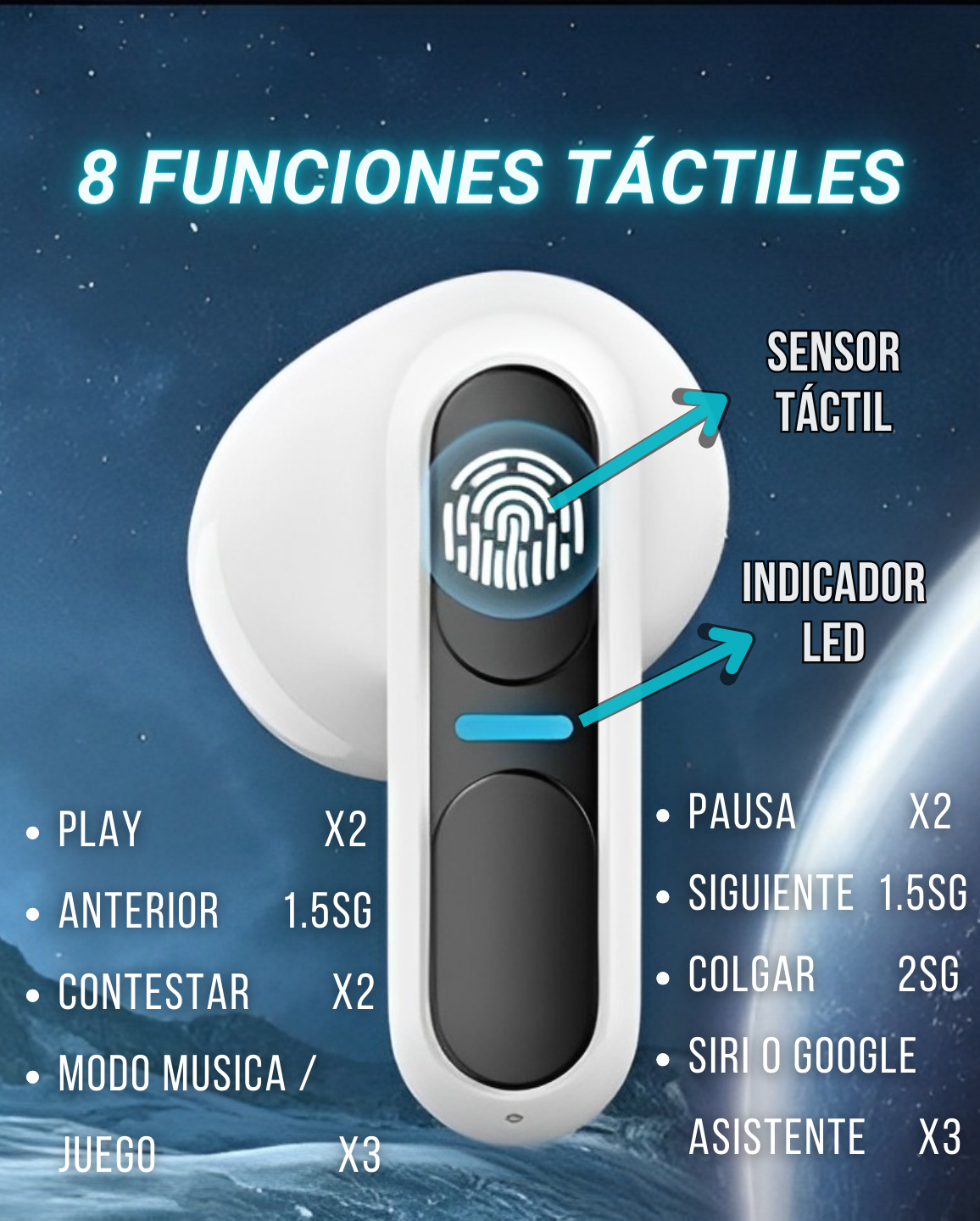 • Controles táctiles con 8 funciones ✳️