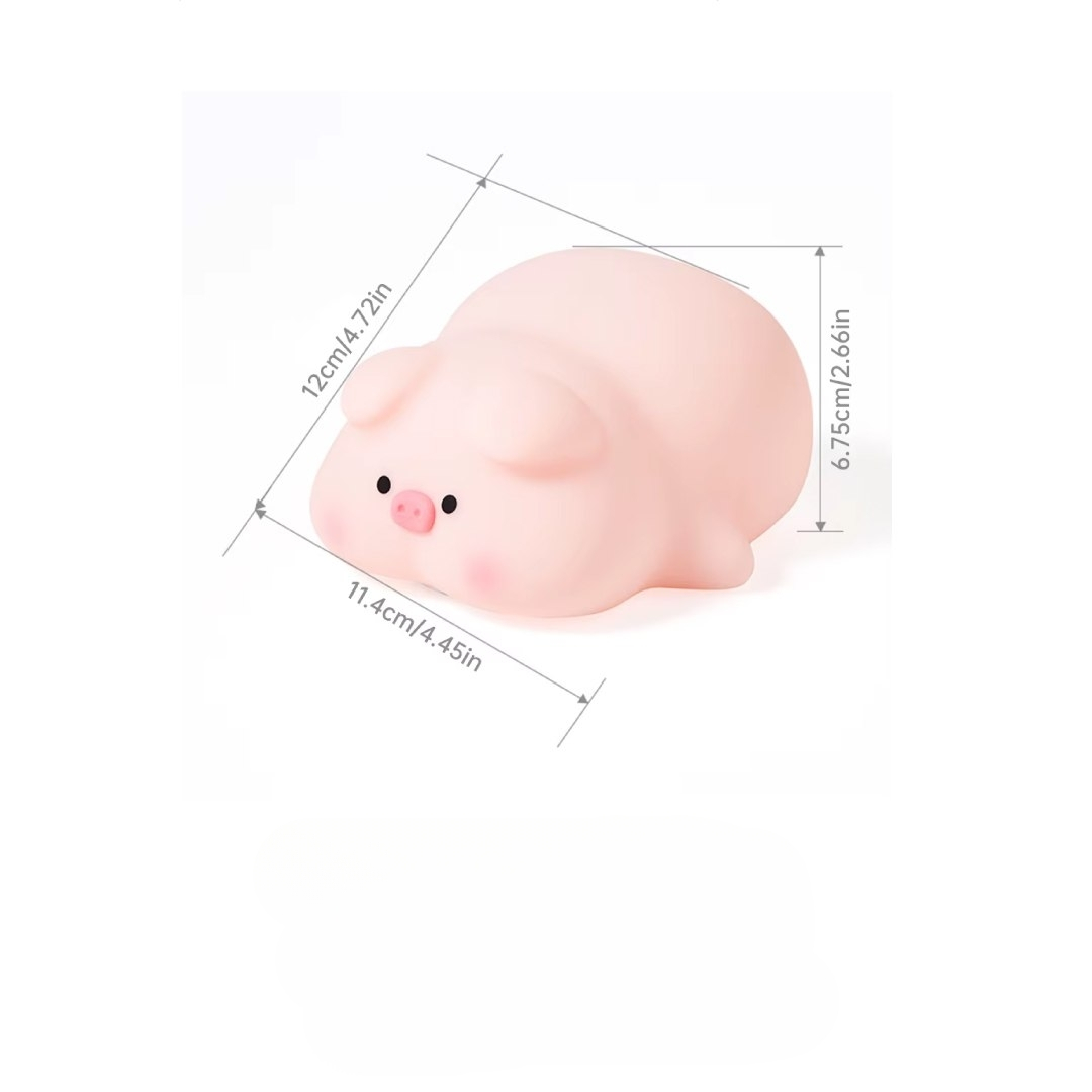 Diseño de Cerdito Adorable: Lo más llamativo es su forma de cerdito, que suele ser de silicona suave y segura para niños, con detalles como orejitas y un hocico que la hacen muy tierna.